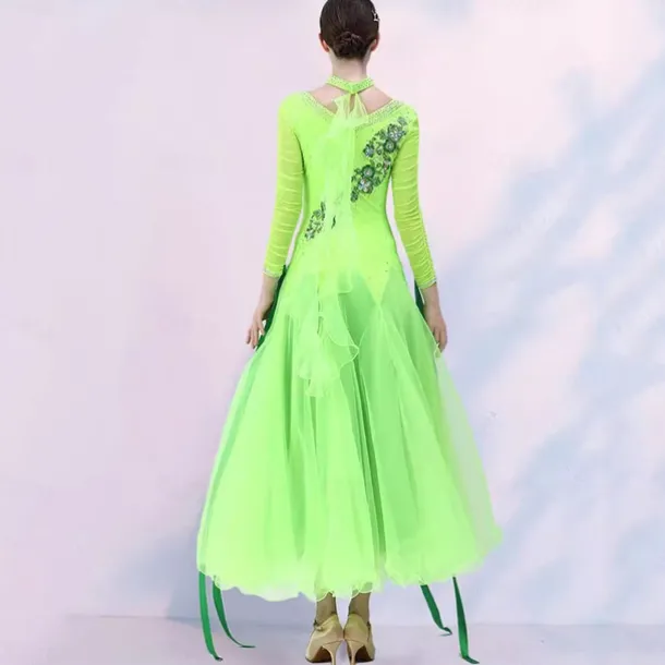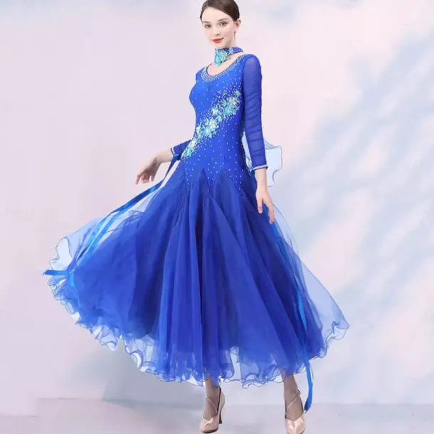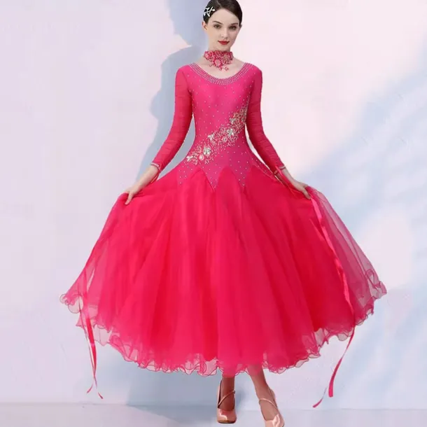 Ballroom Dance Dress Embroidery Splicing Crystals / Rhinestones Women’s Performance Party Long Sleeve Mesh Spandex Organza