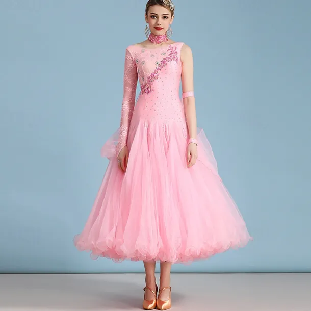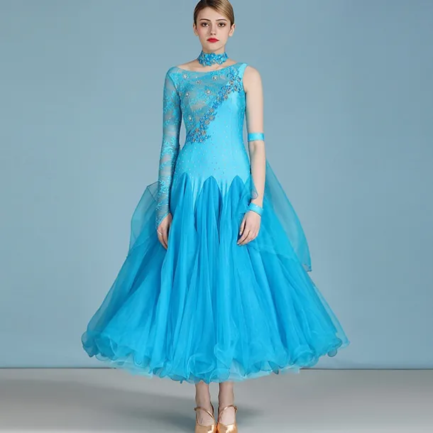 Ballroom Dance Dress Rhinestone Women’s Performance Long Sleeve Polyester Nylon