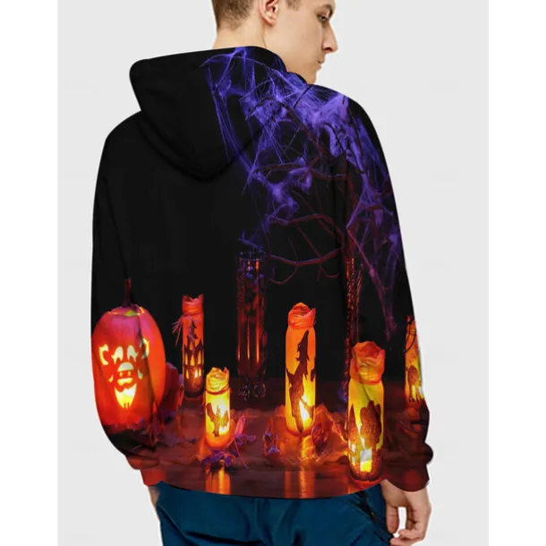 Bat Witch Pumpkin Hoodie Pullover Halloween 3D Front Pocket Graphic For Couple’s Men’s Women’s Adults’ Halloween Carnival Masquerade 3D Print Party Casual Daily