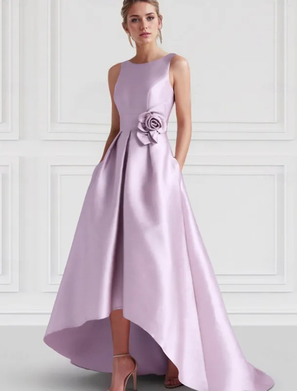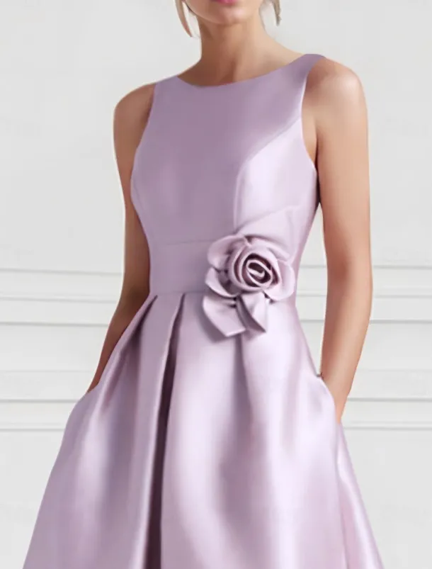 Beach Wedding A-Line Cocktail Dresses Elegant Dress Formal Wedding Guest Floor Length Sleeveless Boat NeckDress Satin with Pocket Dresses
