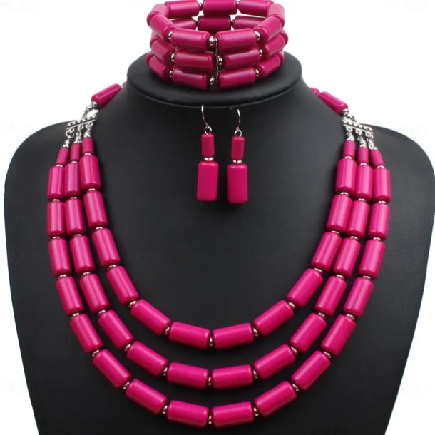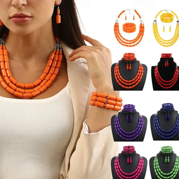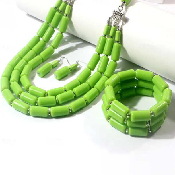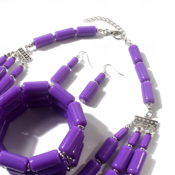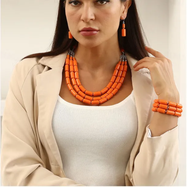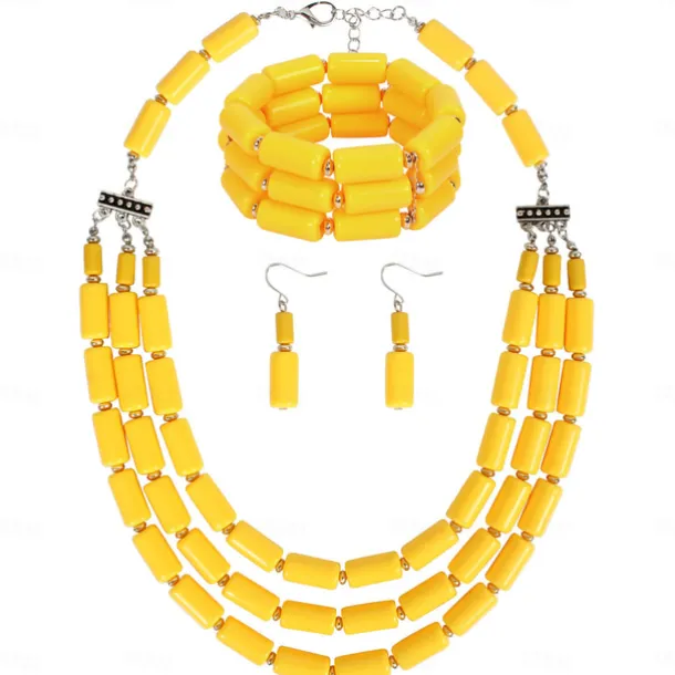 Bead Necklace Bracelet Earings 3 Pcs Retro Vintage 1980s Disco Art Deco Accessories for Women Kings Day Orange Casual Daily