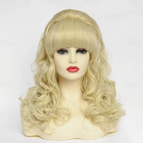 Beehive Wigs Long Wavy Blonde Wig with Bang Big Bouffant for Women fits 80s or Party Halloween Wigs