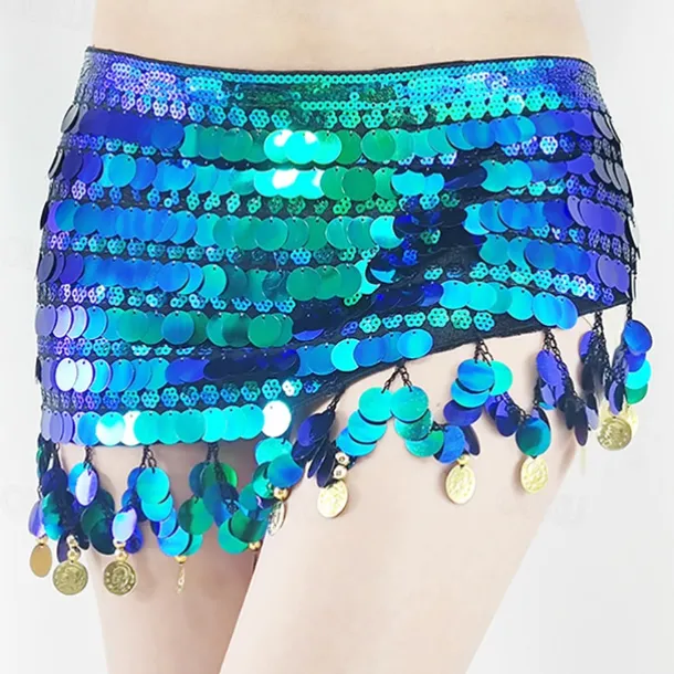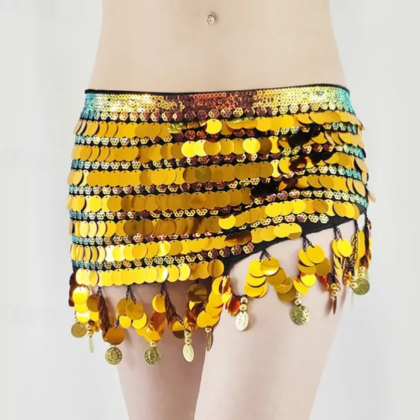 Belly Dance Belt Gold Coin Pure Color Splicing Women’s Performance Training High Polyester Sequined