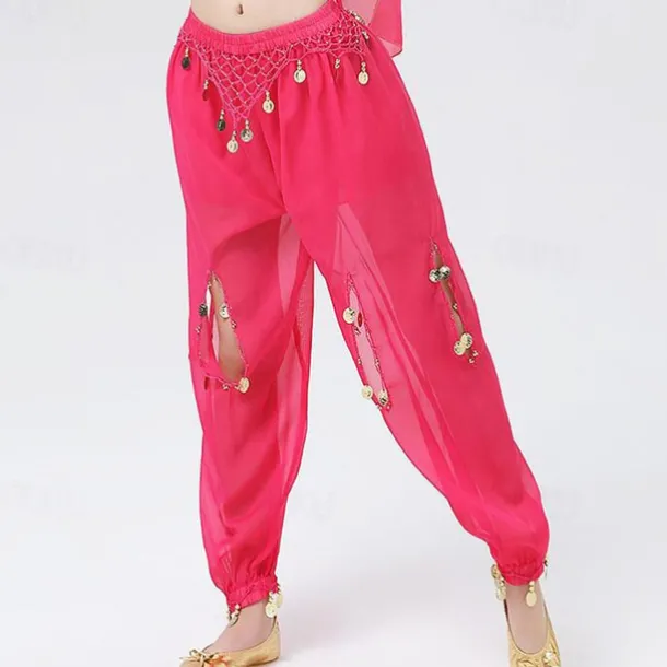 Belly Dance Pants Gold Coin Ruching Hollow-out Women’s Performance Training High Polyester