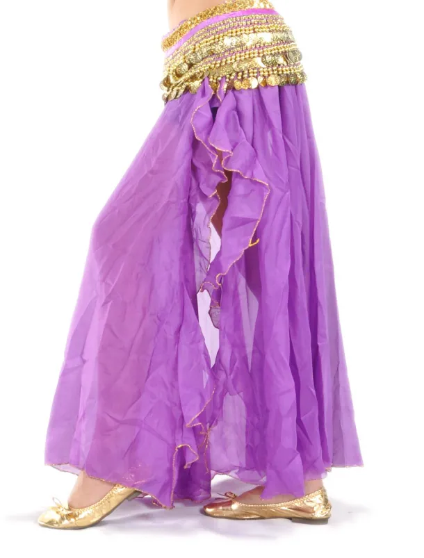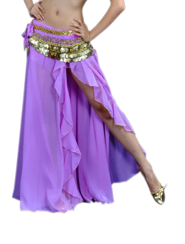 Belly Dance Skirt Split Front Women’s Training Performance Dropped Chiffon (WITHOUT Hip Scarf)