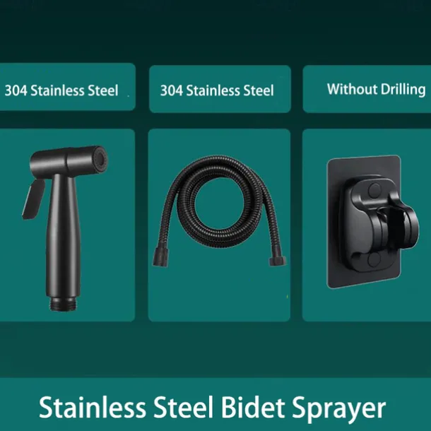 Bidet Sprayer Set No Drilling Bracket for Toilet Stainless Steel Head and Hose 1.5m/3m, Wall Mounted Handlheld Spray, Shattaf Diaper Cleaning for Personal Hygiene