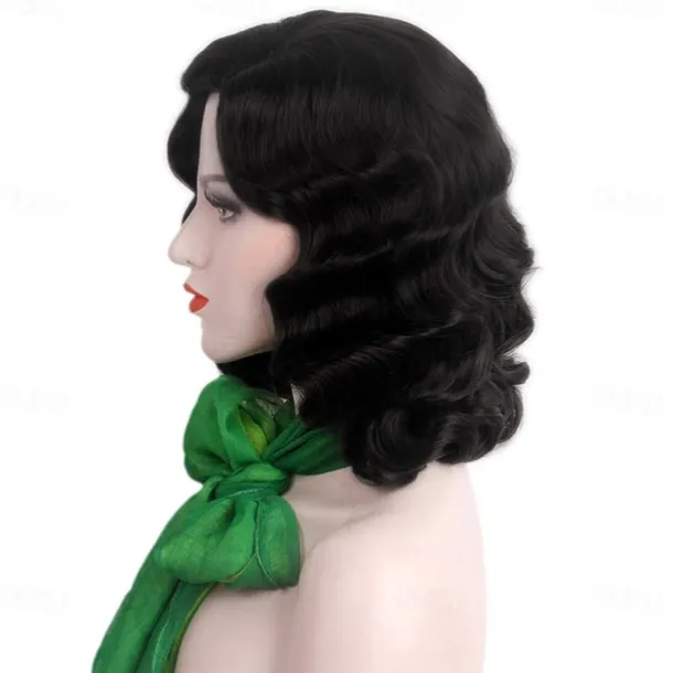 Black 20s Wig for Women Long Finger Wave Party Wig Synthetic Full Vintage Wigs for Womens Lady Cosplay Costume Fancy Dress 1920s Flapper Wig Halloween Wigs