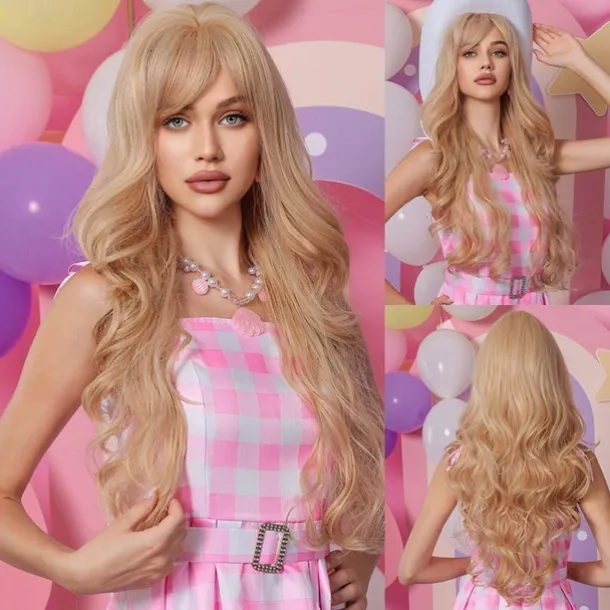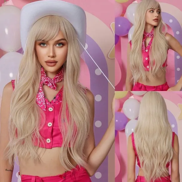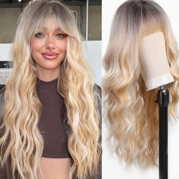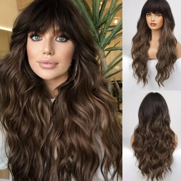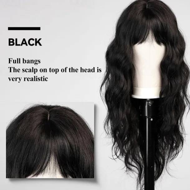 Black Wig with Bangs for Women Long Wavy Hair Wig Black Wig Curly Wavy Synthetic Wigs for Girls Daily Party Use