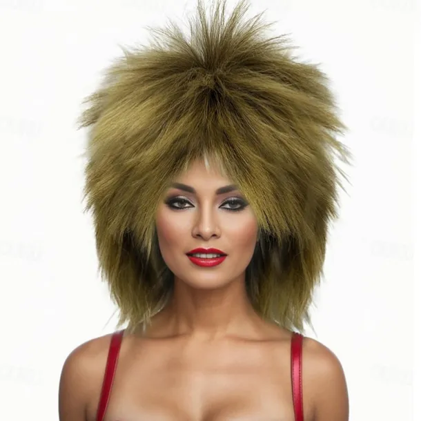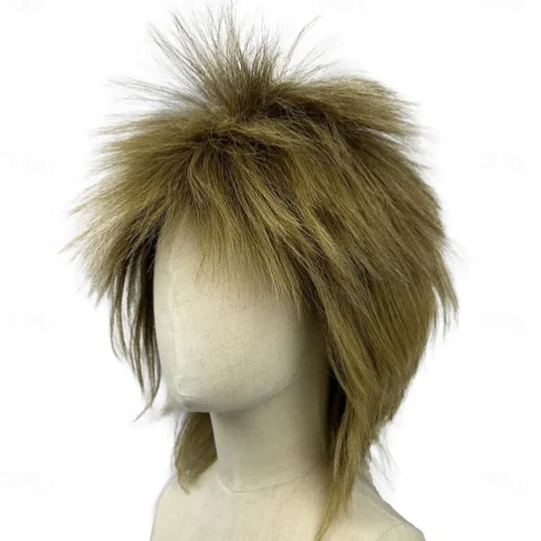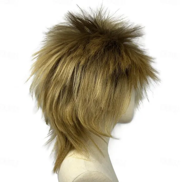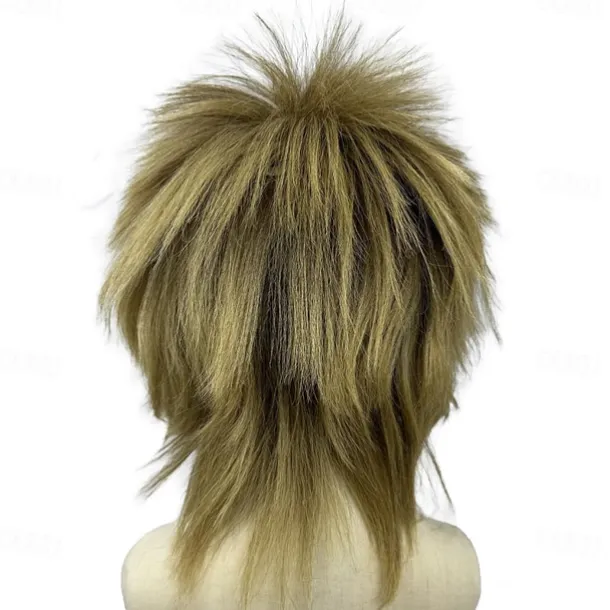 Blonde Curly Wig Mullet Blonde Brown Wig with Dark Roots 70s 80s Rocker Wig Two Tone Layered Wig Cosplay Costume Wigs Women Men (Blonde Spiky Wig) Halloween Wigs