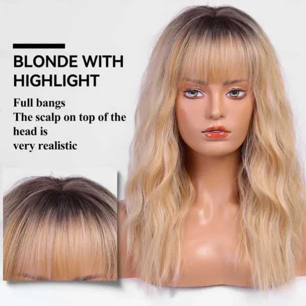 Blonde Curly Wigs With Bangs,Ombre Blonde Curly Wigs for Women Heat Resistant Synthetic Wigs Fashion Women Classic Blonde Halloween Wigs