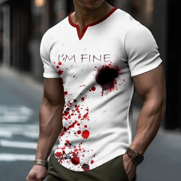 Blood stains I’m Fine Vacation Sports Fashion Men’s 3D Print T shirt Tee Party Street Sports Outdoor T shirt Red & White Short Sleeve Crew Neck Shirt Summer Spring Clothing Apparel S M L XL 2XL 3XL