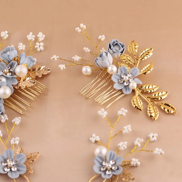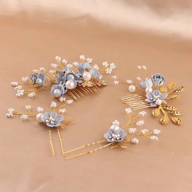 Blue Sweet Flowers Small Beads Flower Hair Accessories Hair Comb Hair Insert Bridal Headdress Dress Dress Accessories