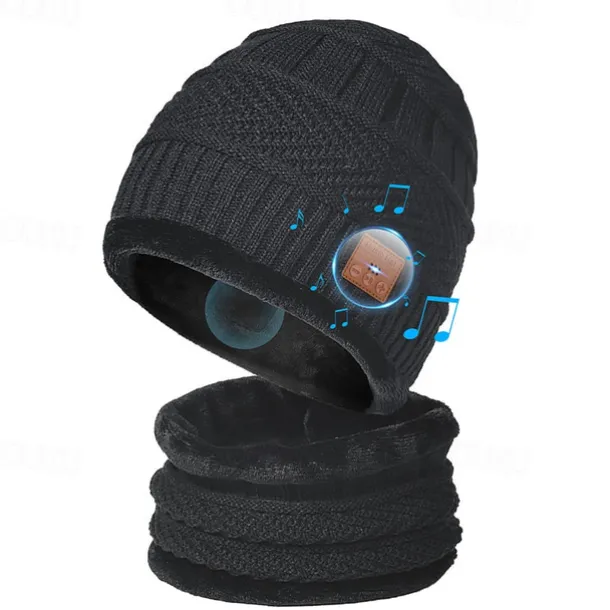 Bluetooth Beanie with Scarf Bluetooth Rechargeable Knit Cap with Wireless Hands Free Head Hat Christmas Gift for Men and Women