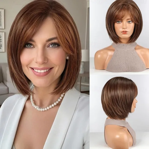 Bob Wigs for Women Synthetic Wig with Fringe Brown Color