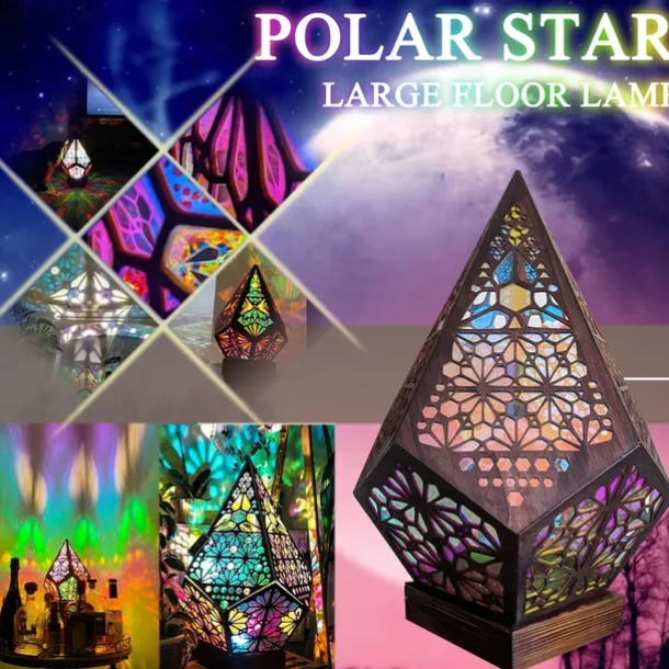 Bohemian Geometric Hollow Floor Lamp, USB Charging Retro LED Lamp with Colorful 3D Projection for Home Decor, Weddings and Parties