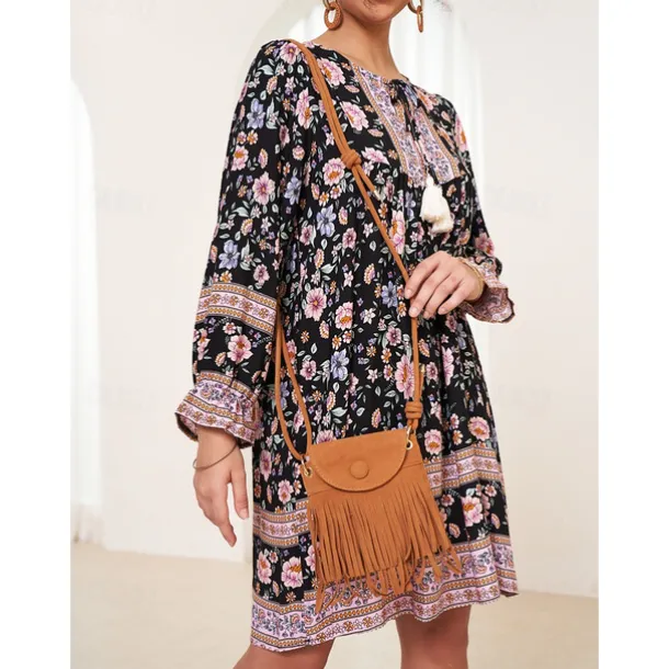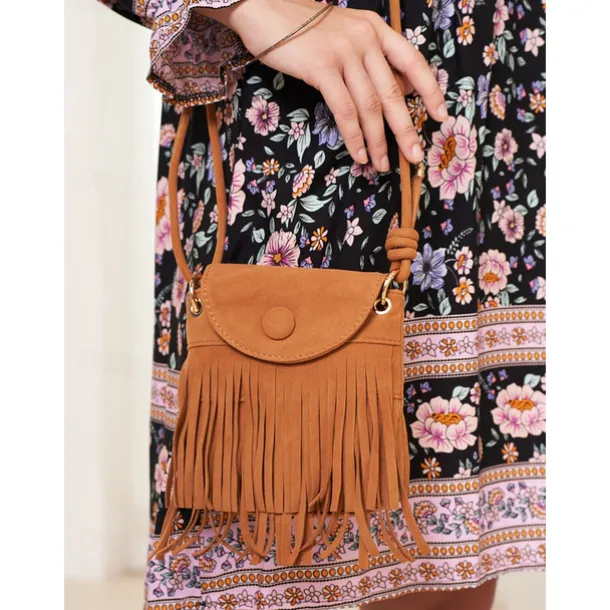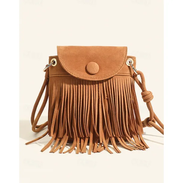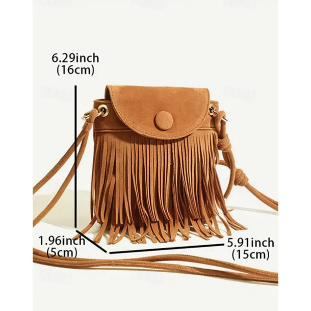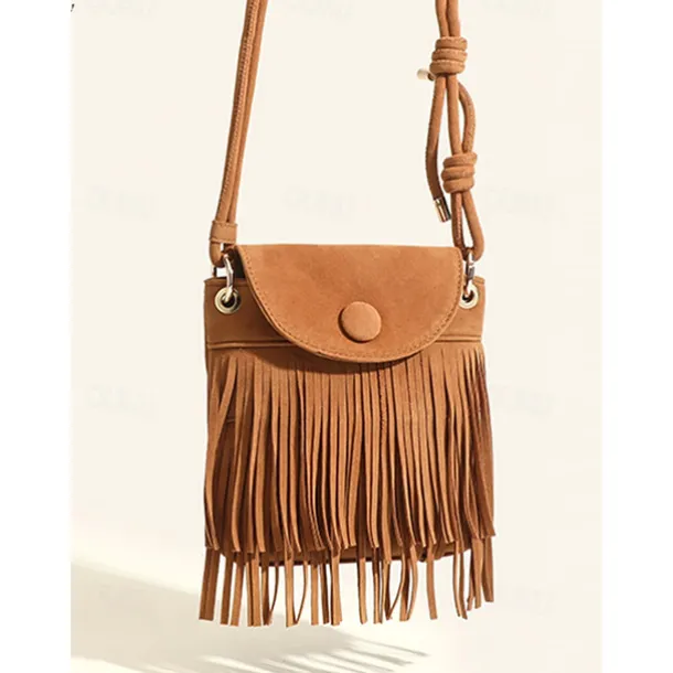Boho Chic Suede Fringe Crossbody Bag – Stylish Tan Shoulder Purse Perfect for Casual Outings