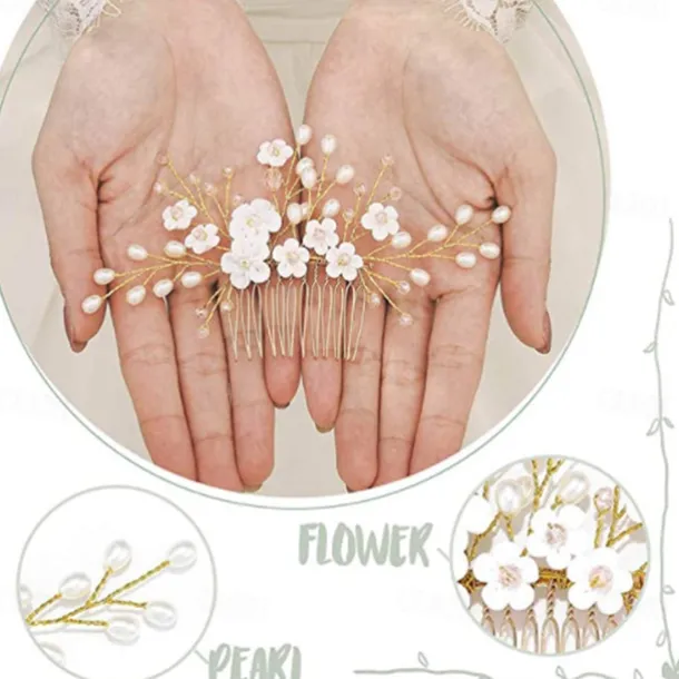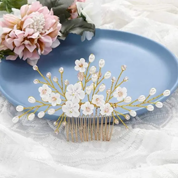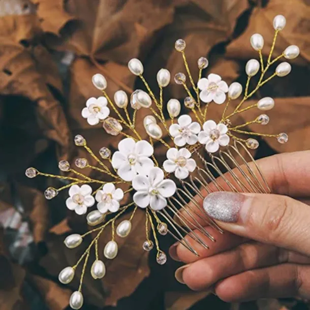 Bridal Headwear European and American Style Hair Accessories Handmade Soft Pottery Pearl Hair Comb Wedding Accessories