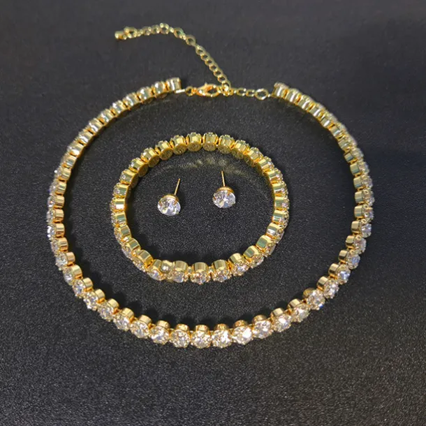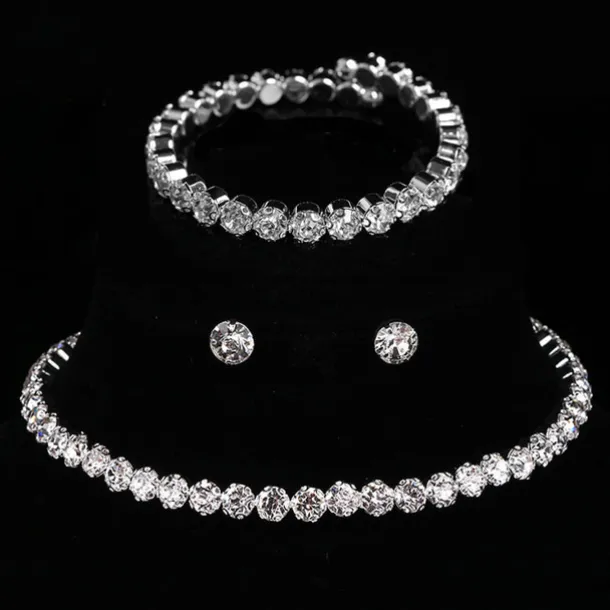 – Elevate your bridal look with this exquisite set that includes a necklace, earrings, and possibly even a bracelet or ring.