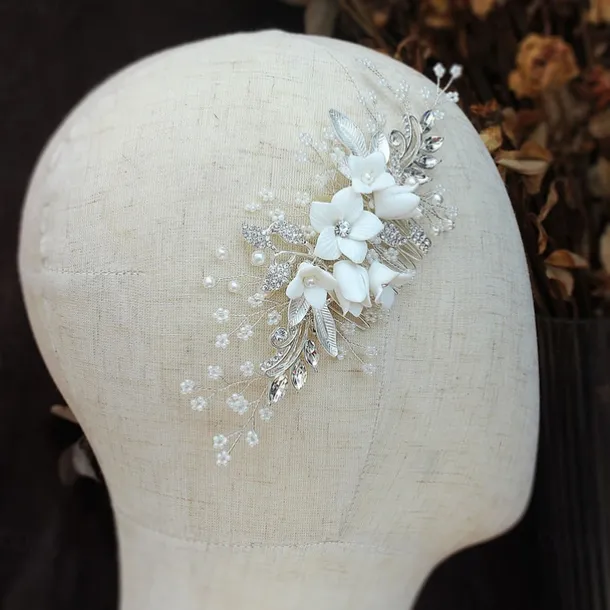 Bride Headwear Wedding Dress Ancient Style Hanfu Hair Comb Pearl Crystal Bead String White Headflower Ceramic Flower Comb