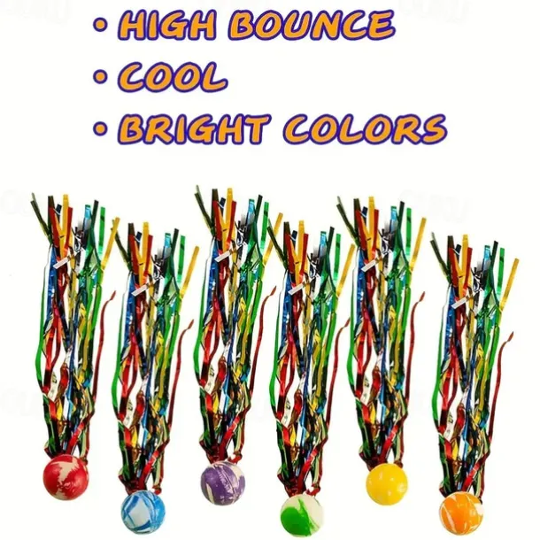 Bulk Set Of 40 Bouncy Super Balls With Colorful Streamers Birthday Party Favors Goodie Bag Fillers Random Colors