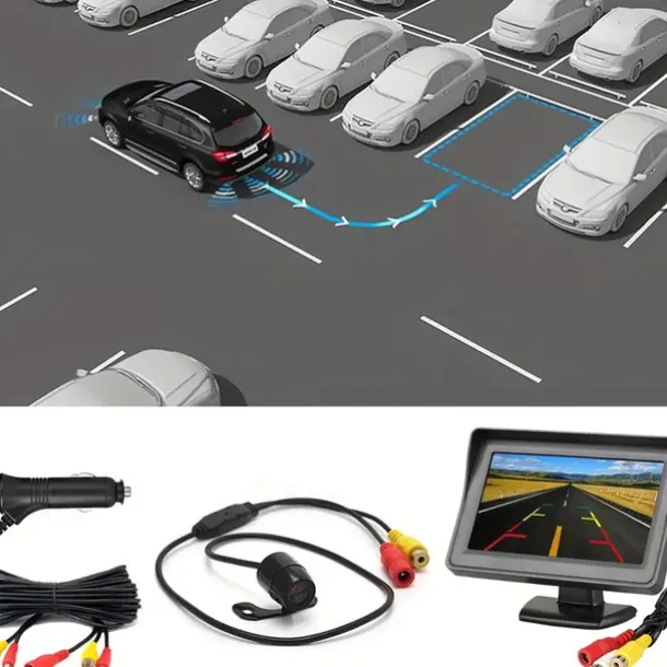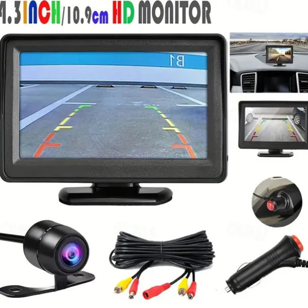 Car Rear View Backup LED Camera Waterproof HD Camera 4.3inch HD Display LCD Monitor Full Set Parking System for Pickup Van RV