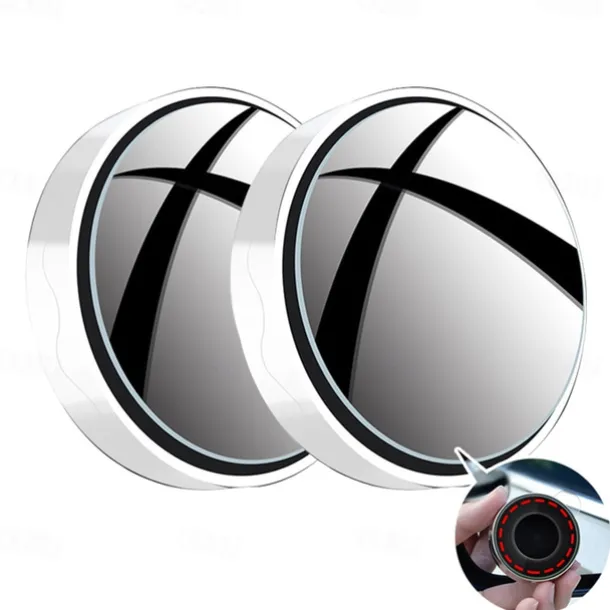Car Suction Cup Mount Auxiliary Rearview Mirror 360 Degree Rotating Wide-angle Round Frame Blind Spot Mirror