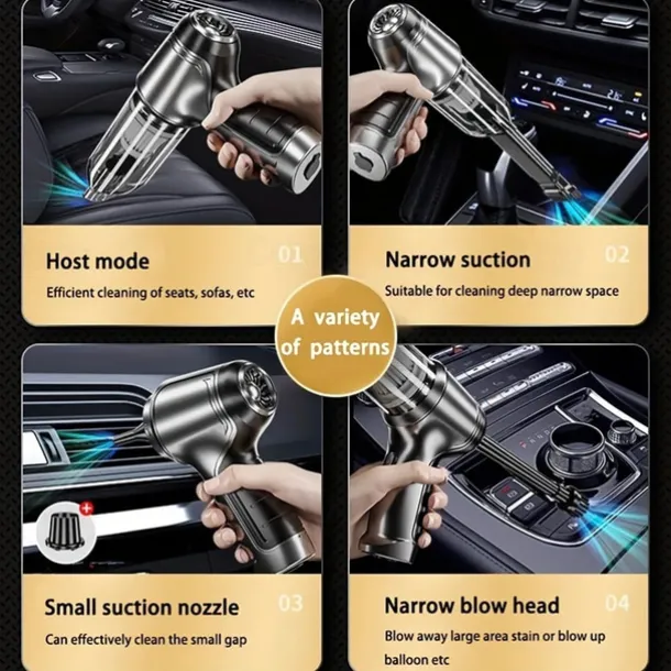 1. Dual Power Suction Technology: The vacuum cleaner utilizes double power suction technology, ensuring exceptional cleaning performance on all surfaces. Whether in a car, home, or commercial setting, it guarantees quick and effortless cleaning.