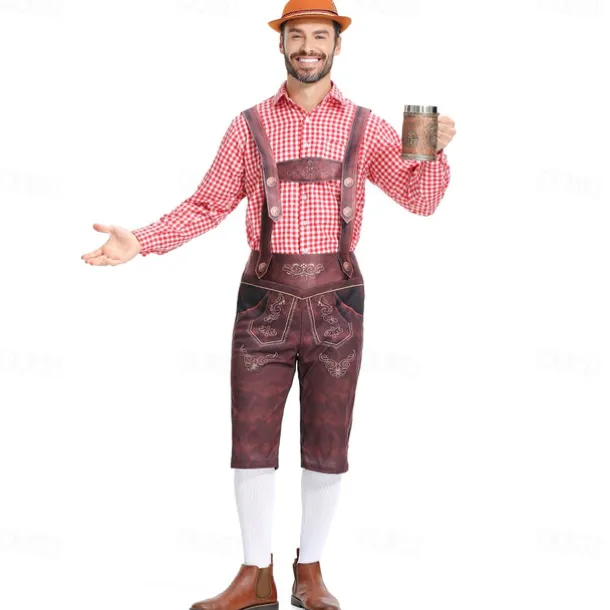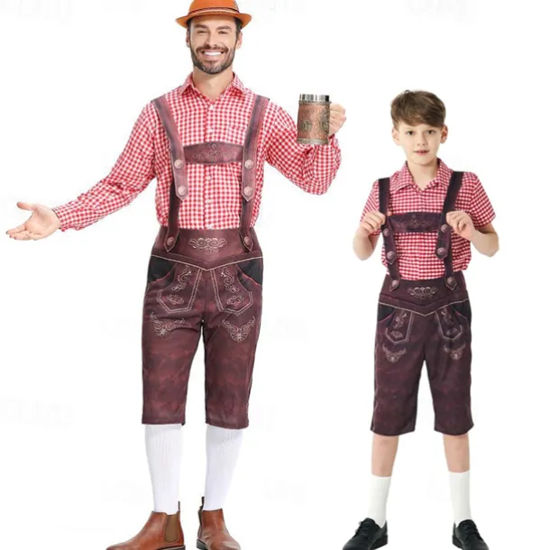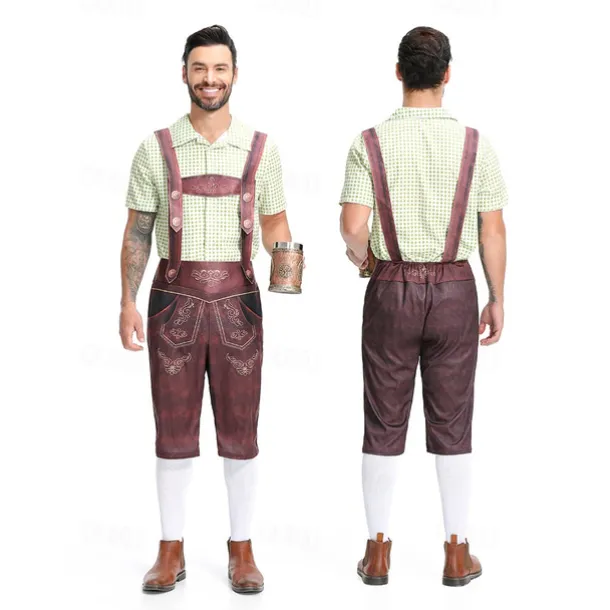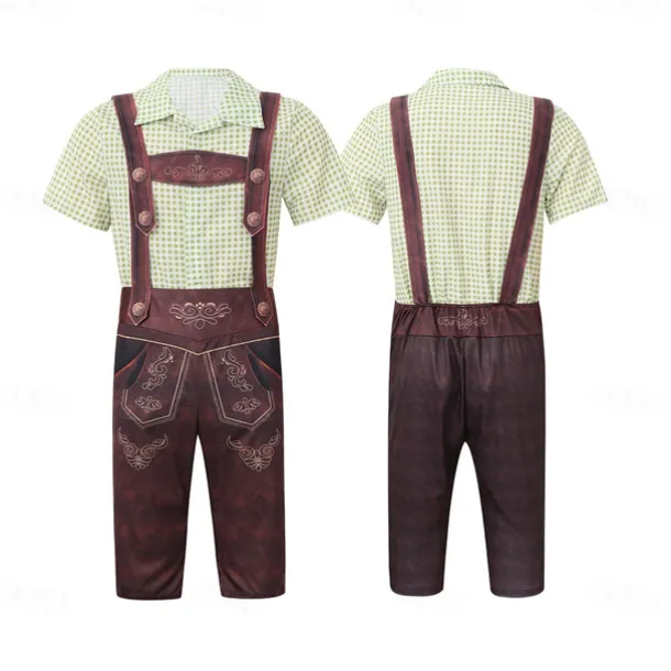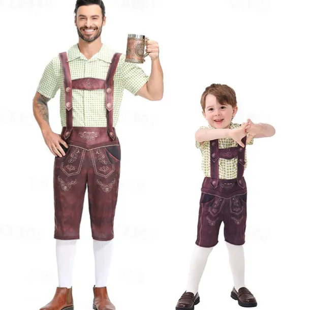 Carnival Oktoberfest Beer Outfits Lederhosen Shirt Bavarian German Munich Wiesn Men’s Boys’ Traditional Style Cloth Shirt Shorts