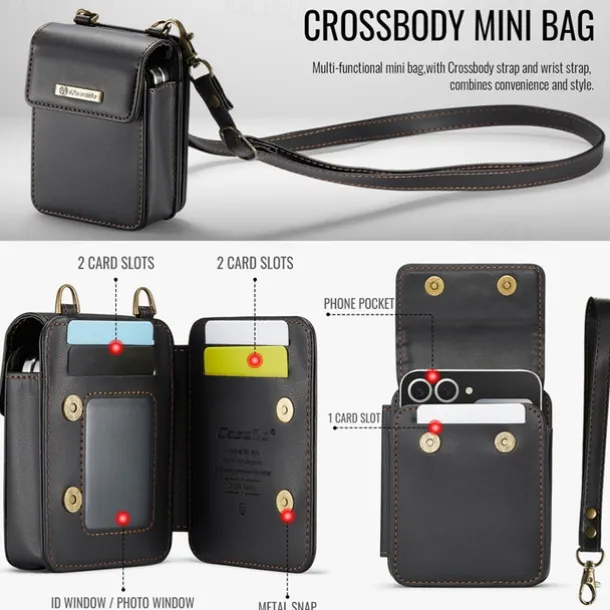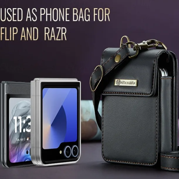 CaseMe Luxury Universal Case for Samsung Z Flip 6 5 MOTO Flip Hot Selling Shoulder Wristrap Magnetic Leather Universal Phone Bag