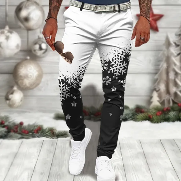 Christmas Men’s Christmas Scene Printed Pants Snowflake Casual 3D Print Trousers Outdoor Street Going out Polyester Wine Black Blue S M L Mid Waist Elasticity Pants