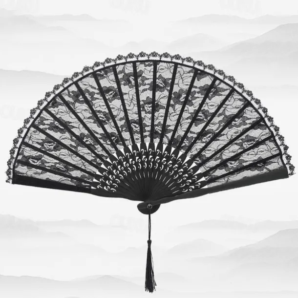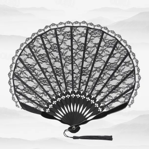 Classical Style Silk Composite Black Lace Fan Style Folding Fan Hand Held Gift Elegant