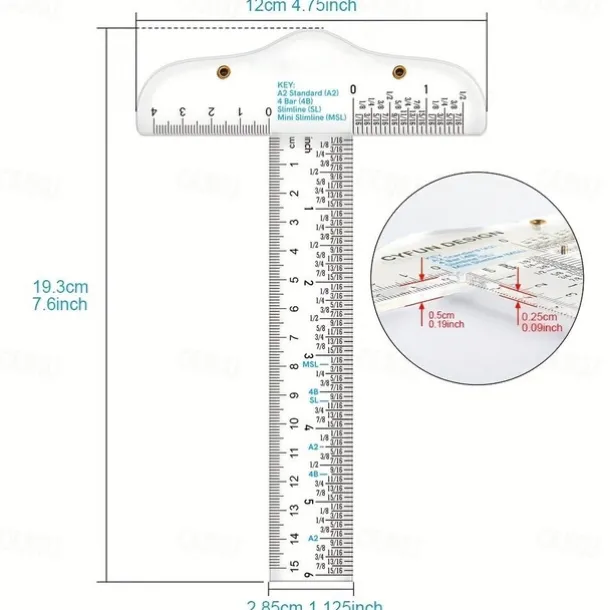 Clear Acrylic T-Square Ruler Crafting and Precision Drawing 6 inch Clear Measuerments Ruler Handtool