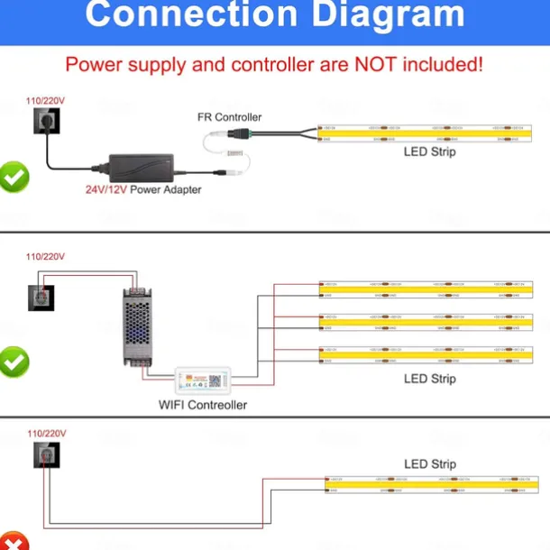 – Efficient Wiring: The LED strip lights can only run up to 5 meters when wired in series. For longer distances, we recommend wiring the strips to the transformer in parallel, back to a single transformer.