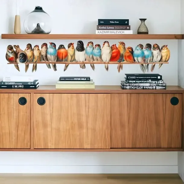 Cool Wallpapers 1Pcs Birds Wall Stickers, Removable 3D Birds Stickers Wallpaper Border, Wall Mural Vinyl Wall Art Decor For Kids Bedroom, Living Room, Nursery Room, 35.4×7.8 Inches