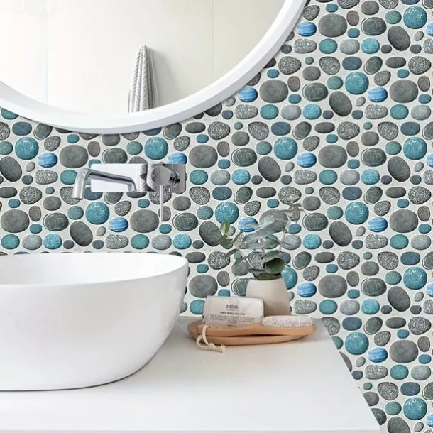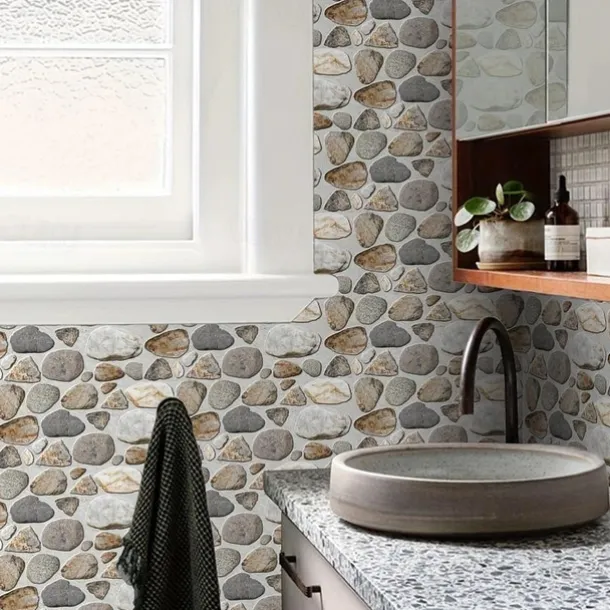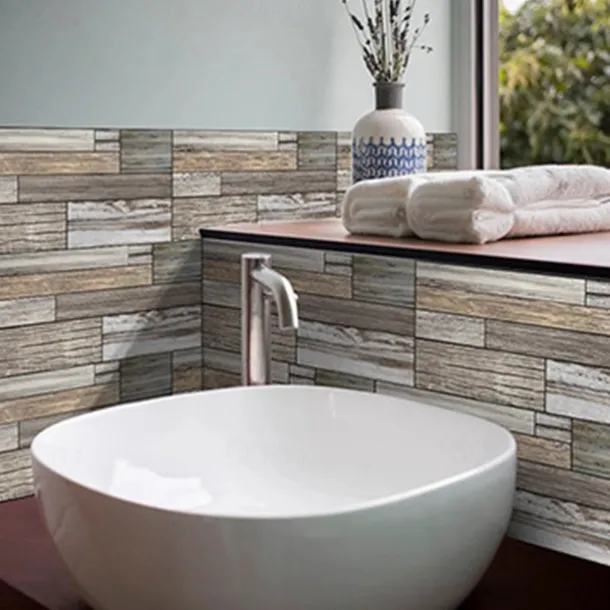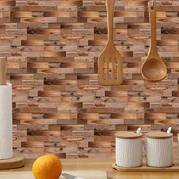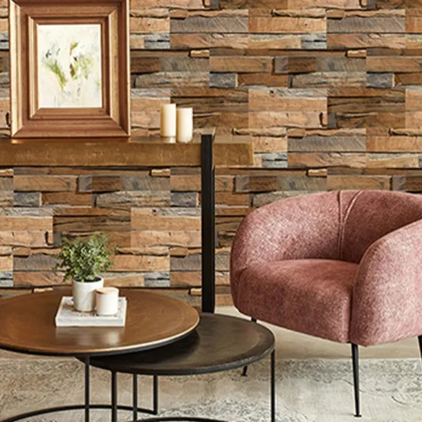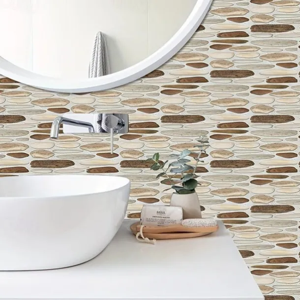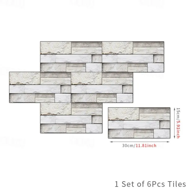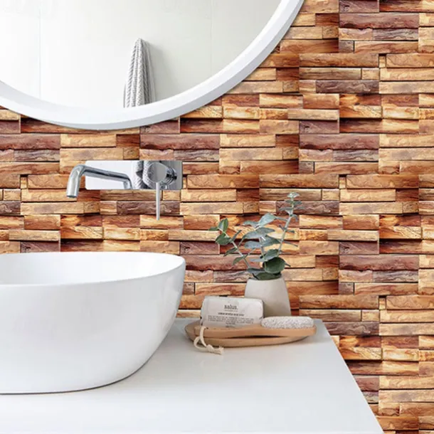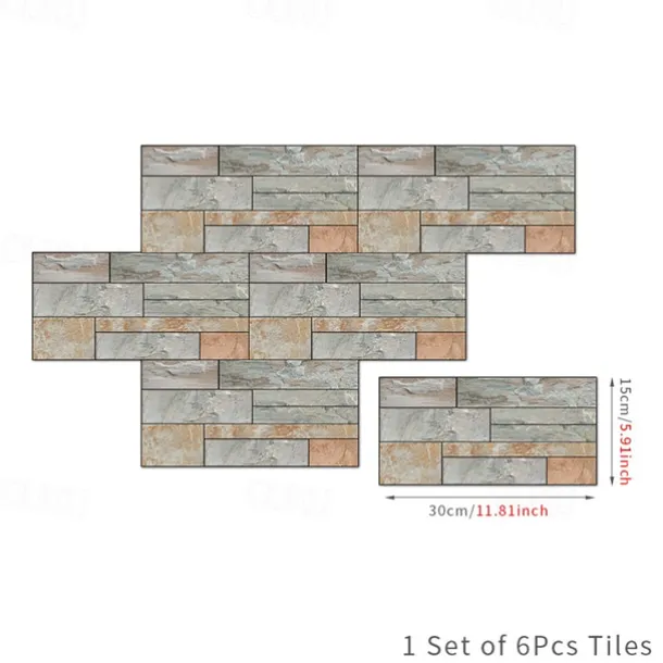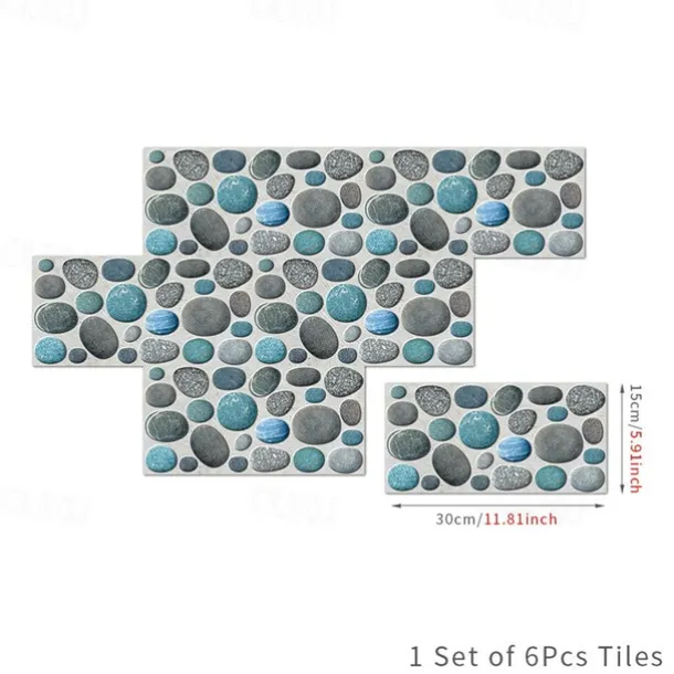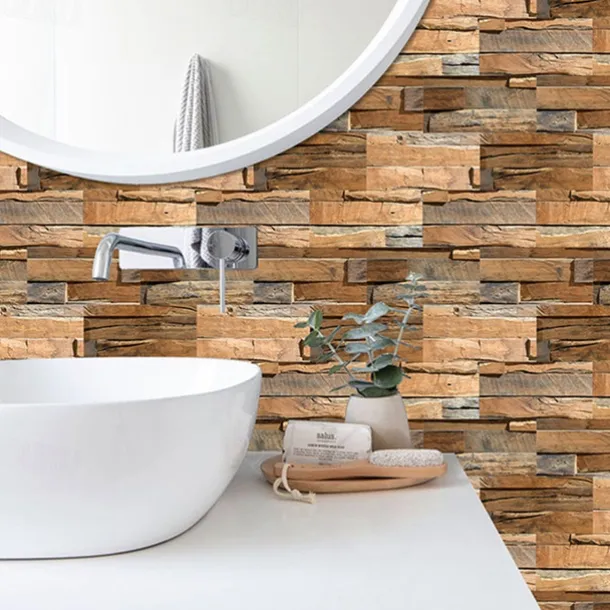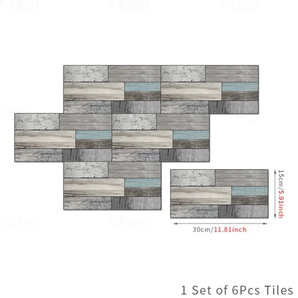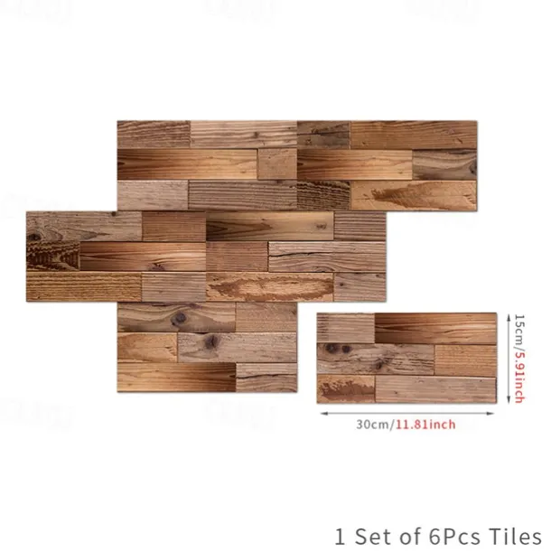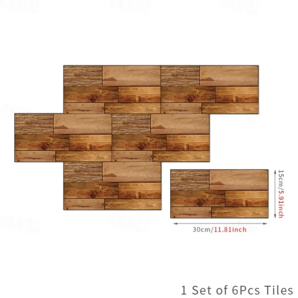 Cool Wallpapers 6pcs Cobblestone Wooden Pattern Wall Panels Wall Mural, Stone Peel Stick Wall Tile Sticker, Kitchen Self-adhesive Wall Decor Waterproof, Room Decor, Home Decor 15x30cm(5.9″x11.8″)