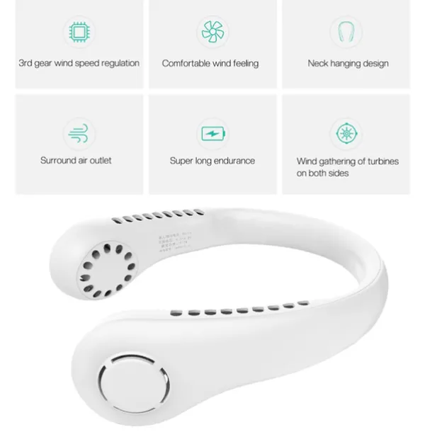 Cooling Bladeless Neck Fan – Wearable Hands-Free USB Rechargeable Fan with 3 Speeds, Ideal Gift for Travel or Sports