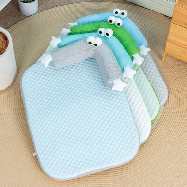 Cooling Dog Bed Pet Cooling Mat with Pillow, Ice Silk Cooling Dog Blanket, Self Cooling Pad for Cat,Dog, Washable Summer Pet Mat for Kennel, Crates, Sofa, Floor