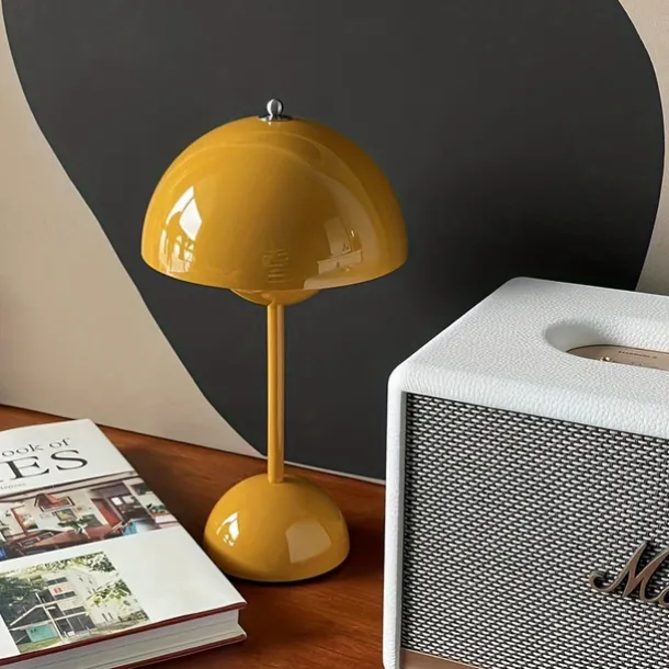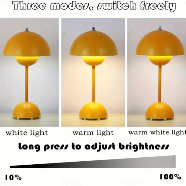 Cordless Touch Table Lamp, Dimmable Mushroom Beside Lamps Tri-Color Temperatures, Battery Operated Desk Lamp for Living Room, Bar and Bedroom, Yellow White Black