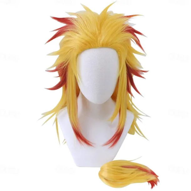 Cosrea Anime Rengoku Kyoujurou Cosplay Wig with Ponytail Yellow Red Wigs for Women Men Halloween Wigs