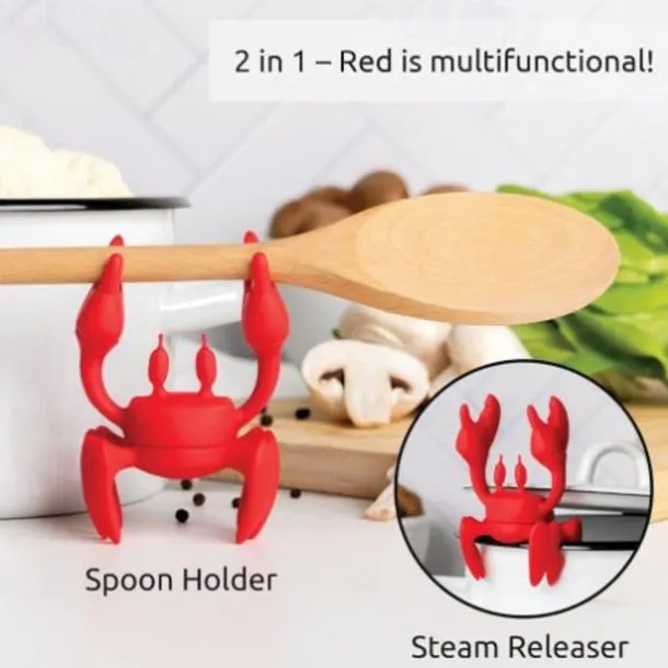 Crab Silicone Utensil Rest – Red Crab Spoon Holder, Heat-Resistant Spoon Utensil Holder Clip, Kitchen Grill Utensil Holder, Silicone Spoon Rest for Stove Top Creative Kitchen Gifts