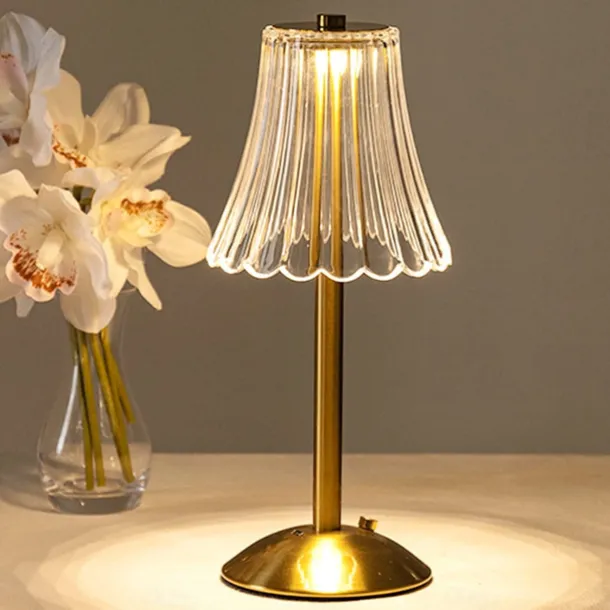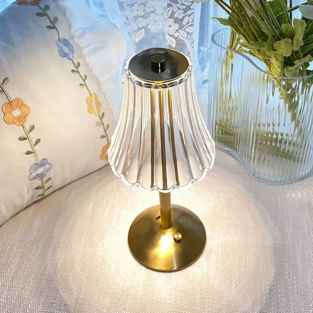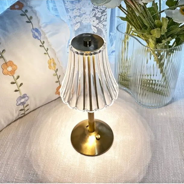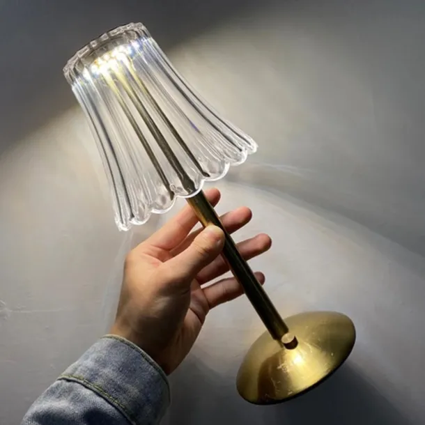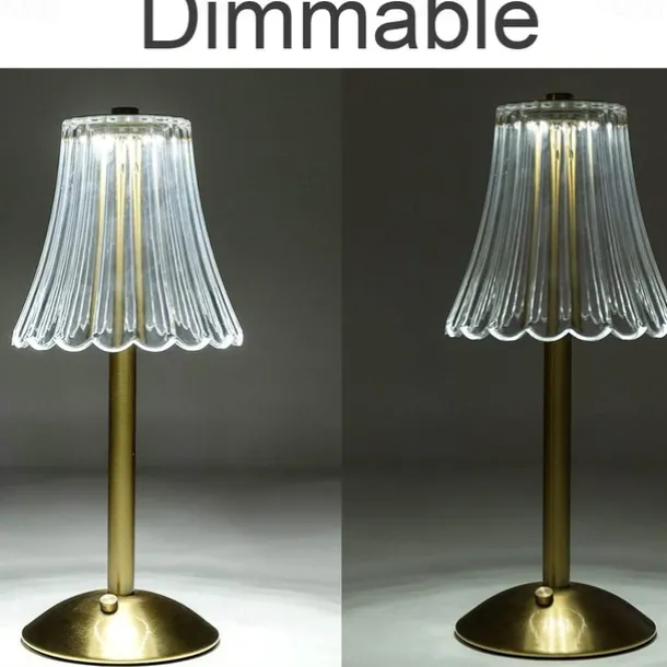 Crystal Cordless Table Lamp Nordic Style Skirt Modeling Bedroom Decoration Creative Atmosphere, Rechargeable Night Lamp Three Dimming Modes with USB Power Supply