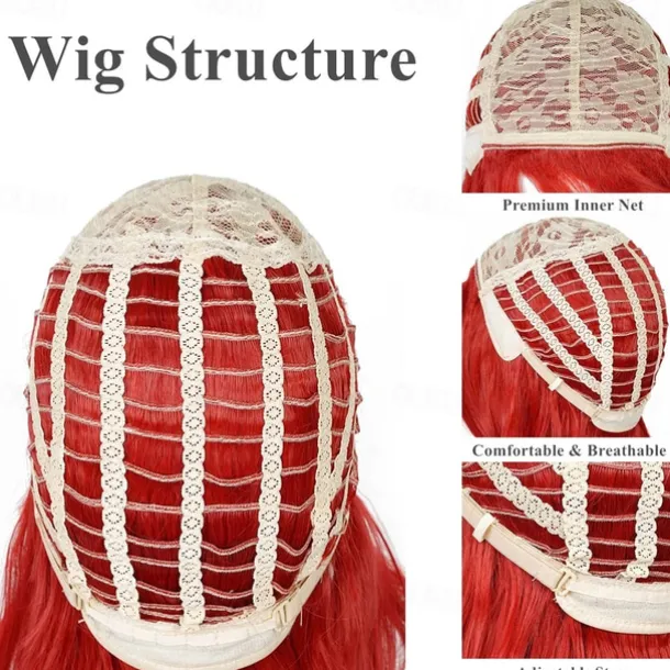 Curly Red Mermaid Wig for Women Long Wavy Cosplay Daily Hair Heat Resistant Synthetic Fiber Wig for Party Christmas(Only Wigs) Halloween Wigs