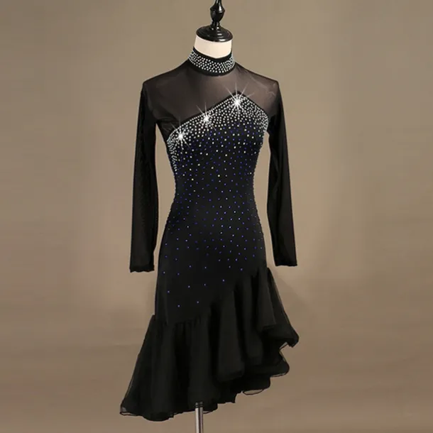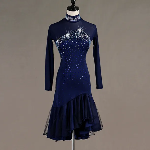 Dance Salsa Latin Dance Dress Crystals / Rhinestones Women’s Performance Long Sleeve Spandex