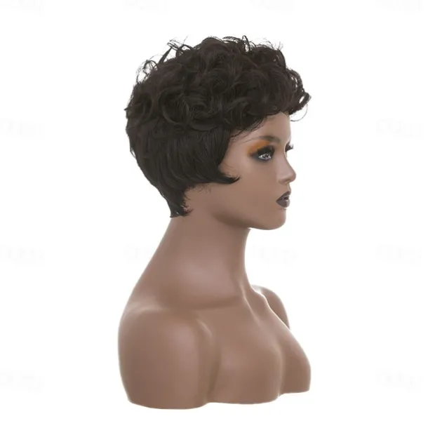 Dark Brown Short Pixie Cut Wigs for Black Women Curly Hair Replacement Short Black Layered Wavy Pixie Wigs With Bangs For Black Women
