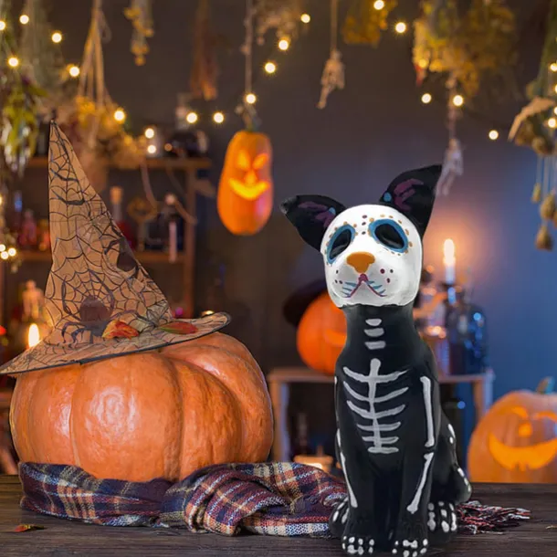 Day of The Dead Dog Statue, Halloween Sugar Skulls Animal Statue Resin Crafts, Ornament