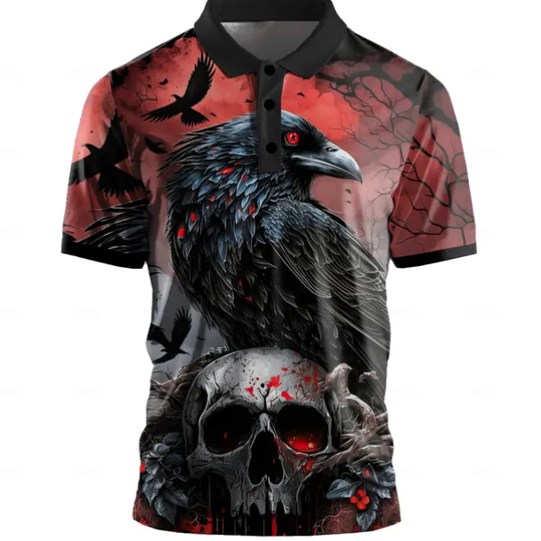 Day of the Dead Men’s Skull Golf Shirt Short Sleeve Polo Shirts Collared Shirts Casual Horror Streetwear Festival Wear Party Outfits 3D Print Buttons Summer Black