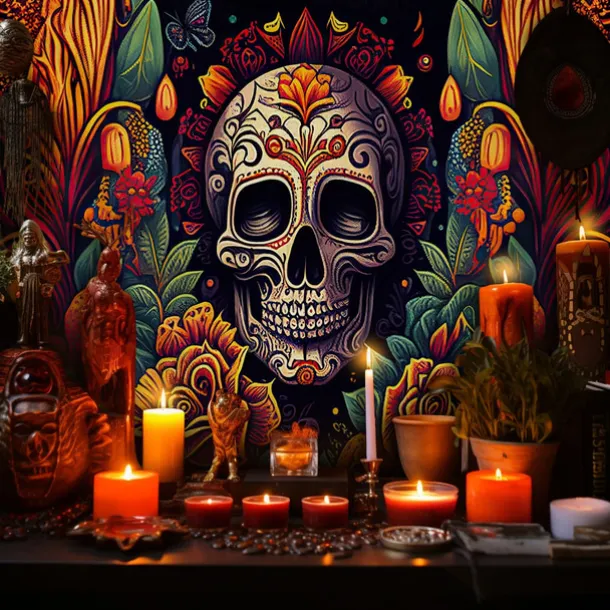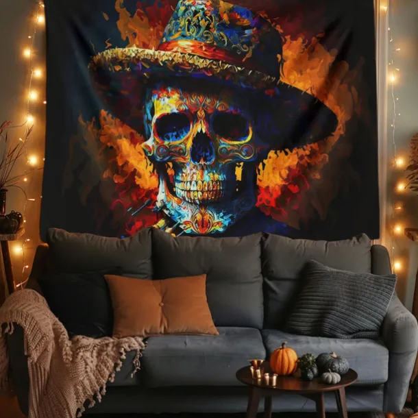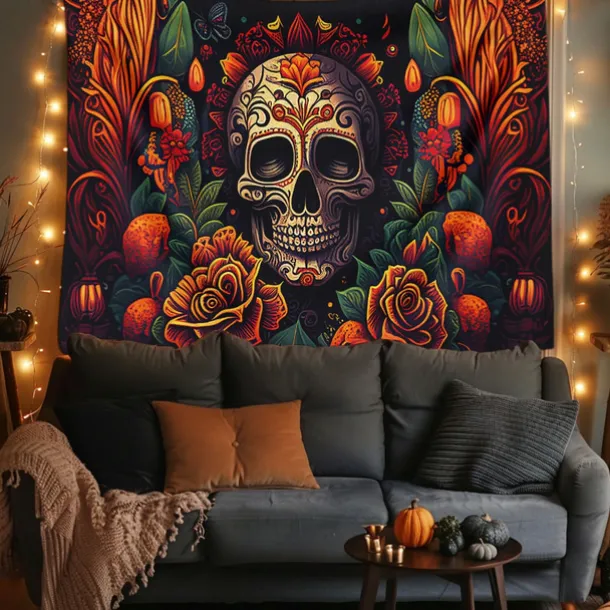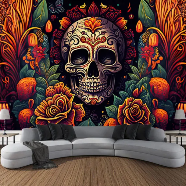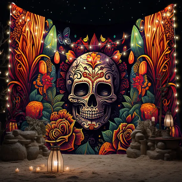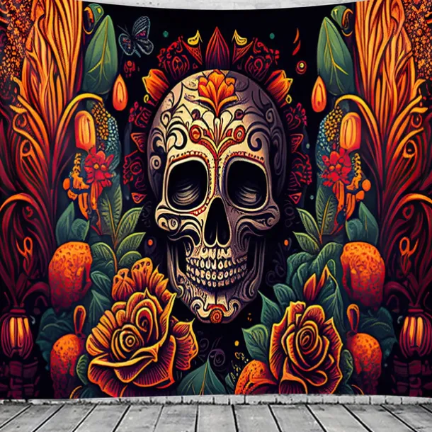 Day of the Dead Tapestry Banners Wall Hangings Skeleton Marigold Mexico Dark Punk Gothic Style Party Dorm Shooting Backgrounds Decorations Wall Door Background