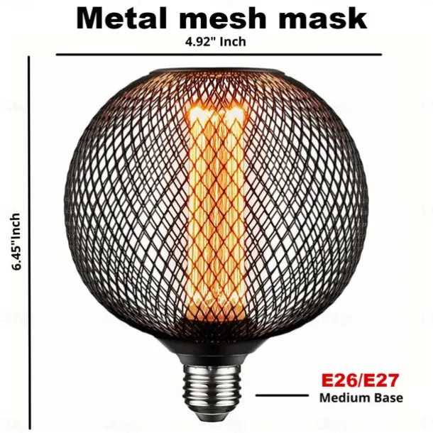 Decorative Light Bulb Black Metal Cage 5W LED Light Bulb White Glass Lampshade 8W E26/E27 LED Light Bulb Base Warm White Edison Decorative Light Bulb Suitable for Home Kitchen and Dining Room