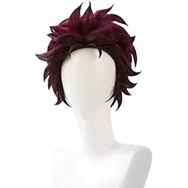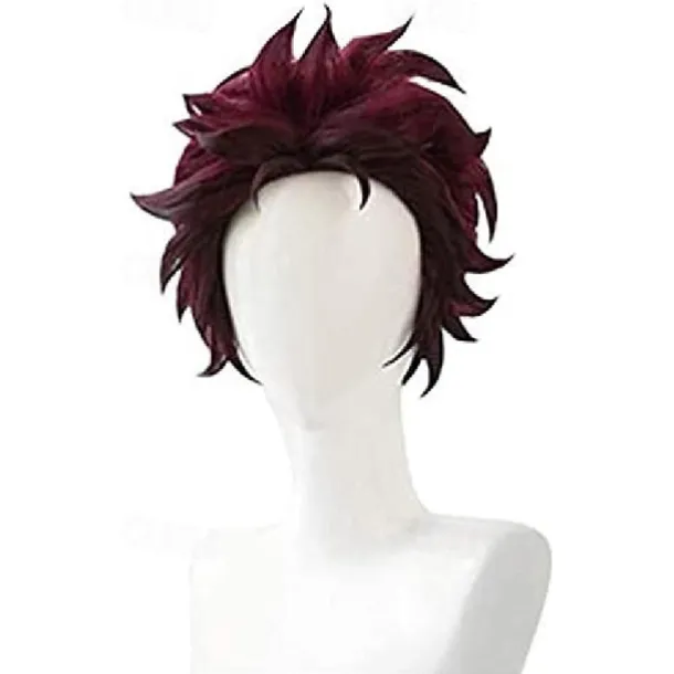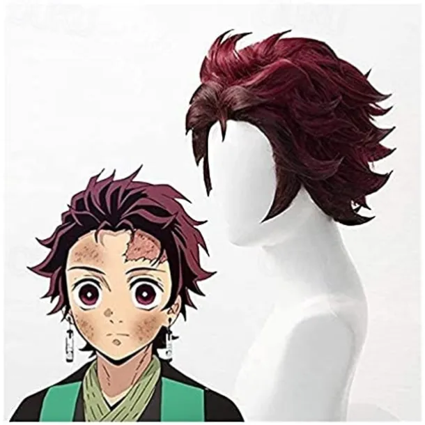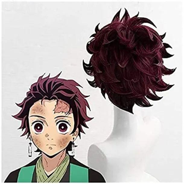 Demon Slayer: Kimetsu no Yaiba Tanjiro Kamado Short Chestnut Brown Heat Resistant Hair Cosplay Wig + A Pair Of Ear-Rings,Just Wig (Color : Just Wig) Halloween Wigs