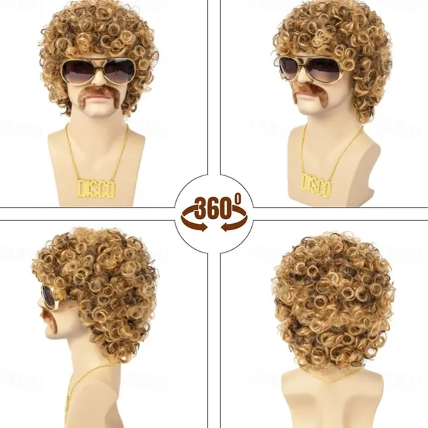 Disco Wig 70s Costumes Wig Afro Wig Men Short Curly Natural Fluffy Synthetic hair Wig for Carnival Disco Party Halloween Wigs